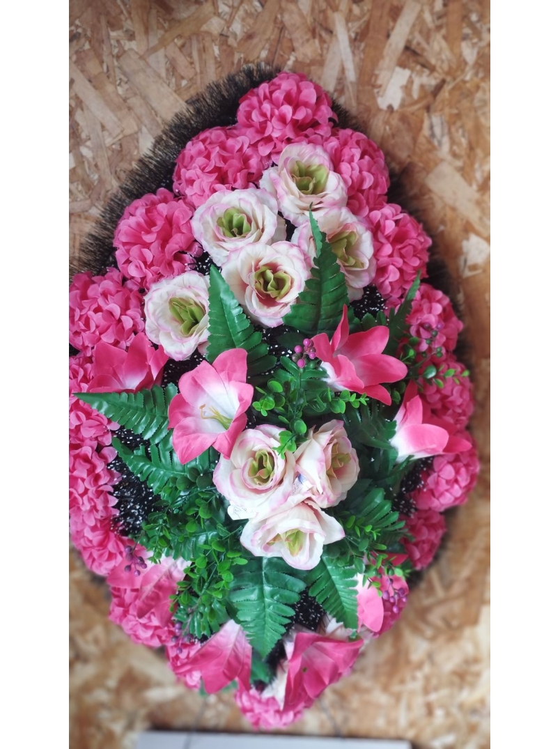венок похоронный классический, выполнен в розовом цвете. размер100/60